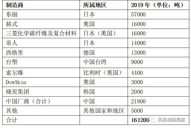 表 1 知名碳纤维厂商2019年产能(数据来源:AJR公司)
